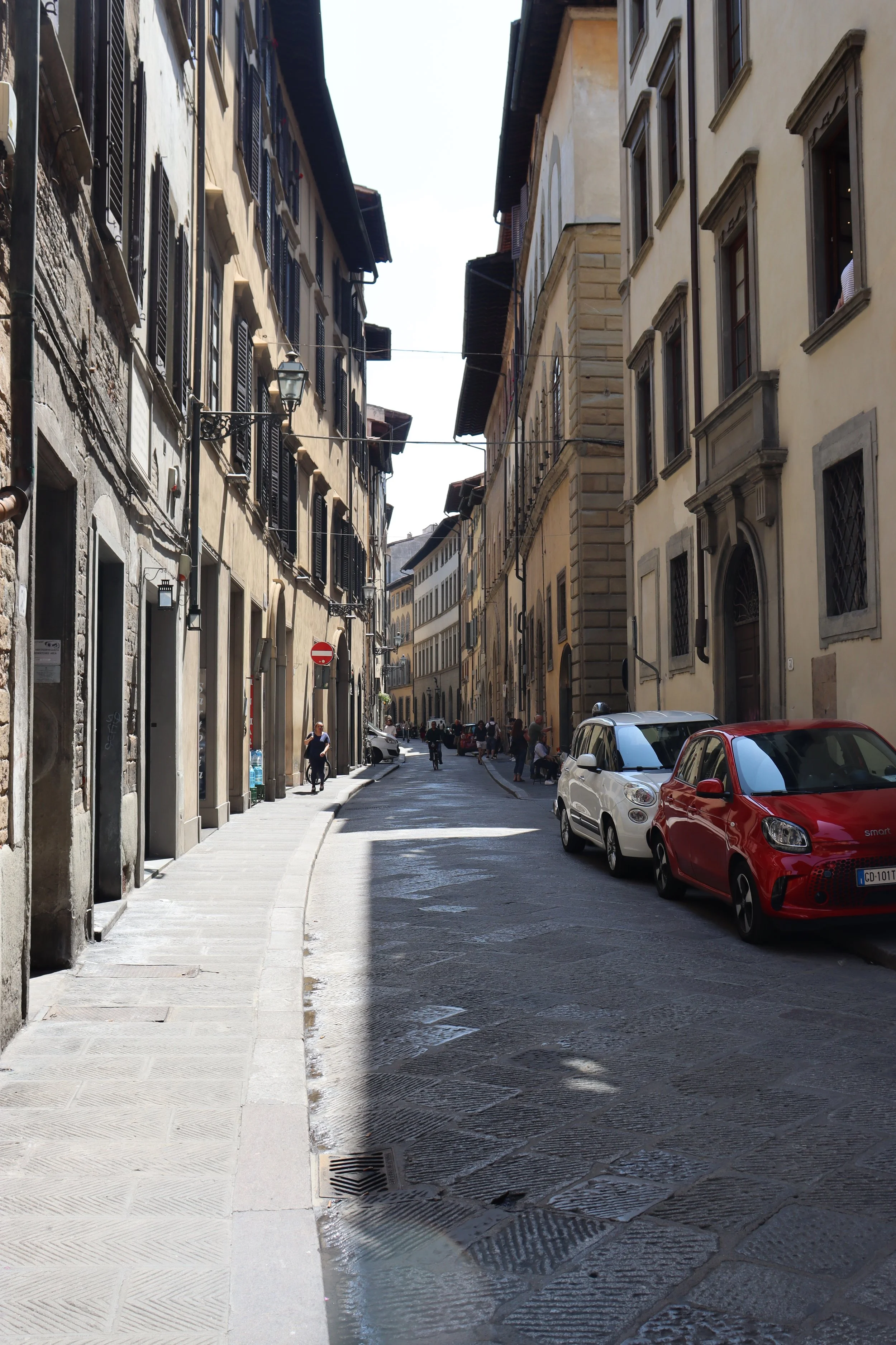 As you can imagine we were eager to explore the city on foot. We made a beeline for the River Arno to see the famous Ponte Vecchio Bridge which is the oldest Bridge in Florence, first constructed during the Roman period, aprrox 123AD. I was immediately struck by the serene beauty of the River Arno and the vibrant buildings around us. I particularly liked how narrow and windy the streets were!