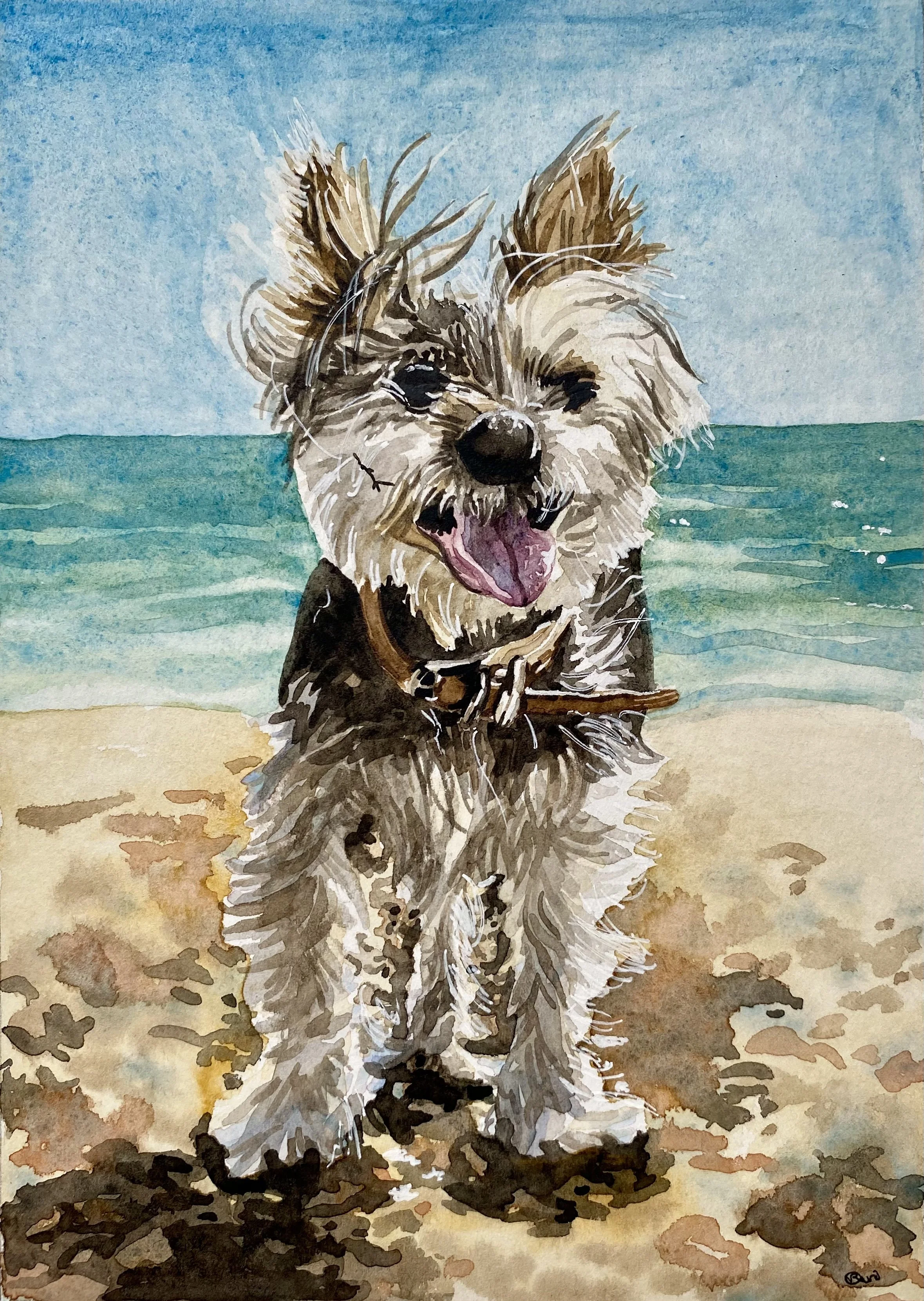 Fibee is a famous Brightonian with over 20k followers on her Instagram Account; @fibee_the_gammy. She has one of the most lovable, charismatic face I’ve ever seen and this was fun to paint! I painted from one of the photos from her Instagram Account (with permission). I decided to use this photo of her on Brighton beach, because it is undeniably one of the famous attractions of the city!