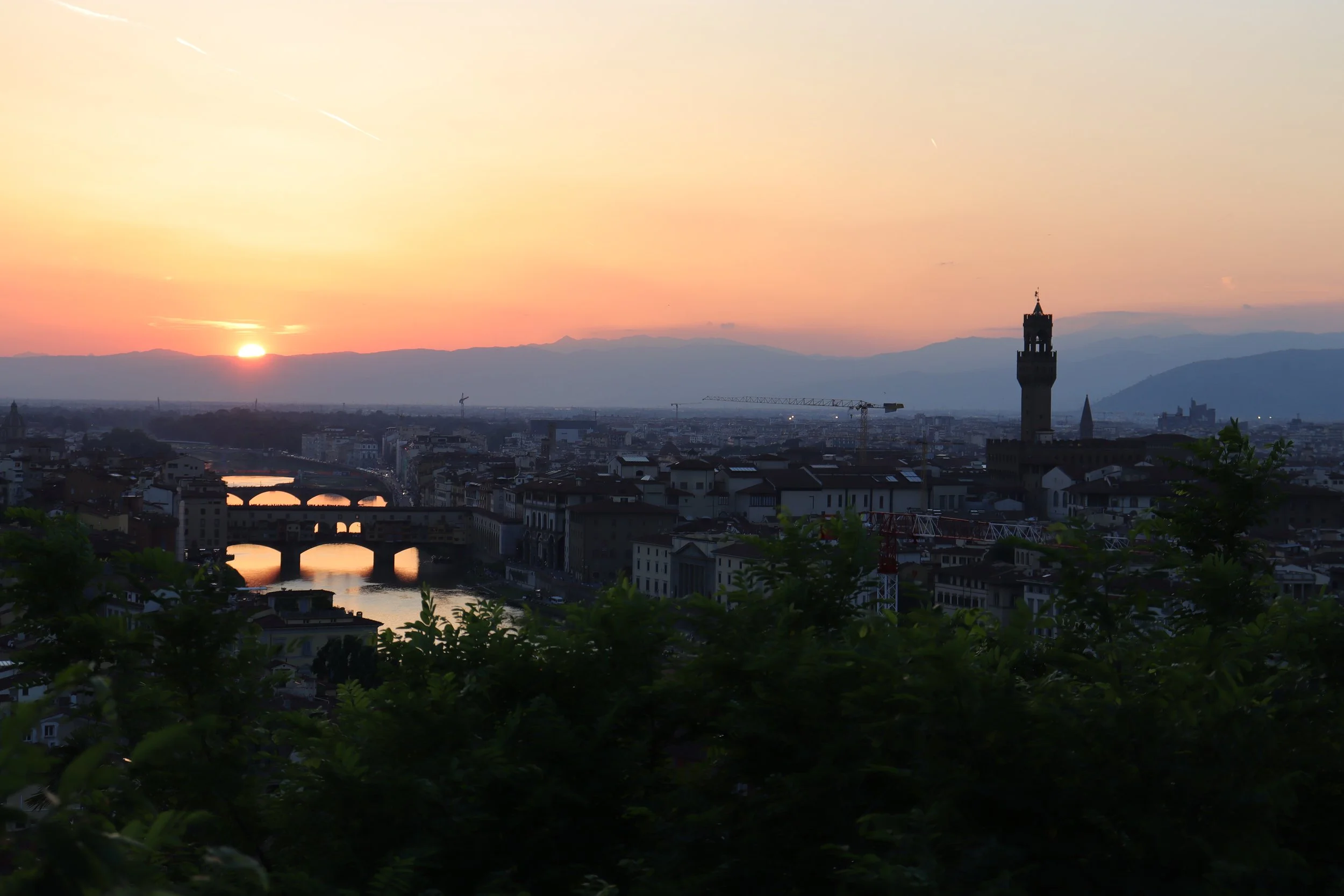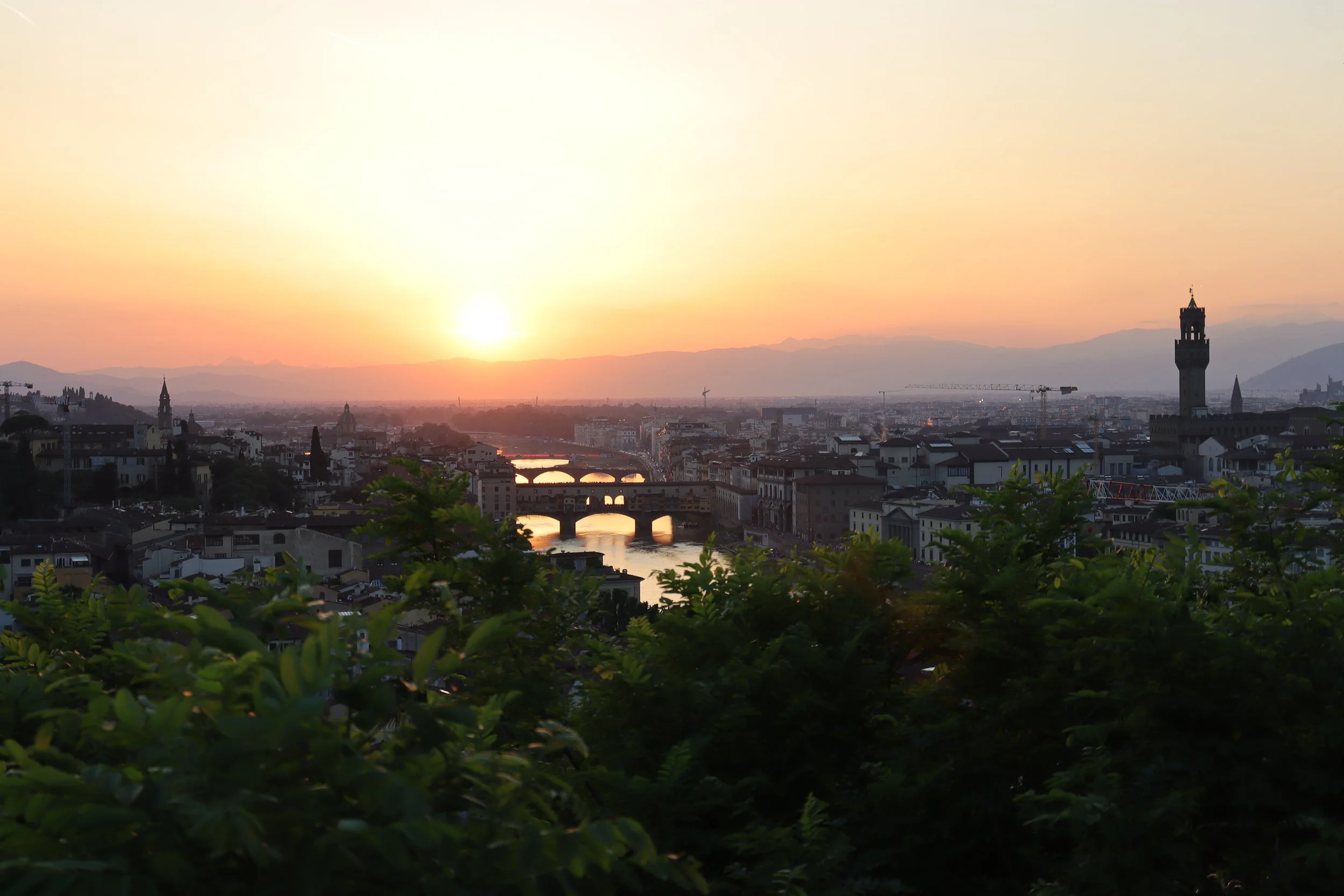 Next we took a romantic stroll up to the Piazzale Michelangelo, and it is a Square south of the River Arno, that overlooks the City of Florence. It’s approximately half an hour walk from Pitti Palace and it’s a very scenic route once you reach the gardens beneath the square, that meanders up to it. We reached the top very hot and bothered by 8pm, but in the end that didn’t phase us because of the sunset views! I definitely recommend taking drinks and food with you as you might have to wait a while to find a seat amongst the crowds of tourists. It was definitely worth the hike though!